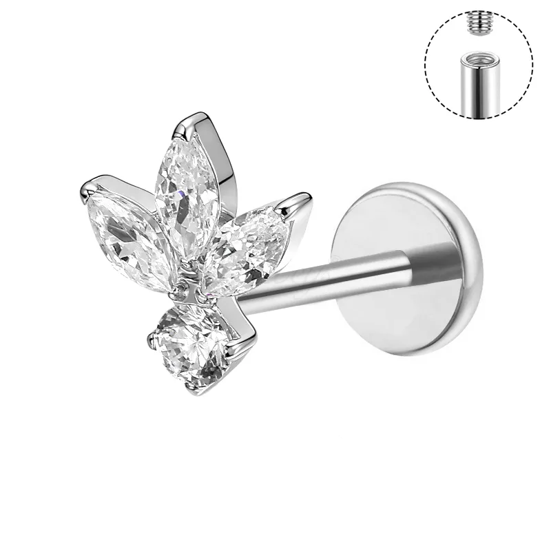 Daweys DS4426 Flower Crystal Internally Threaded Lip Stud ASTM F136 Titanium Labret Piercing Jewelry