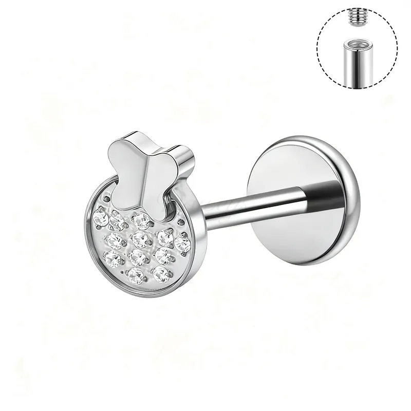 O Daweys DS4454 Premium Titanium Bone Top Lip Stud is designed for those who want a perfect balance of unique style, high-end materials, and professional-grade body jewelry craftsmanship. Featuring an adorable bone-shaped top set above a round disc filled with sparkling zircon stones, this beautifully engineered lip stud stands out with its clean, modern, and ultra-polished appearance.